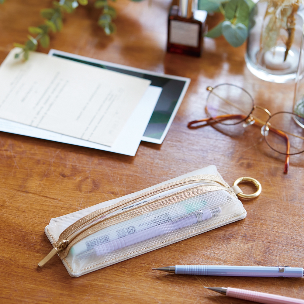 EMILY Mesh Federmäppchen (Beige) Flat Pen Case | by KING JIM