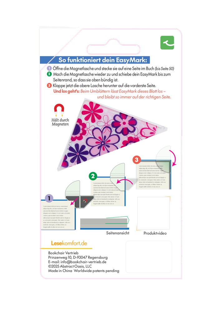 Produktinformationen "Easymark Pink Flowers - Dein smartes Magnet-Lesezeichen Kopie"