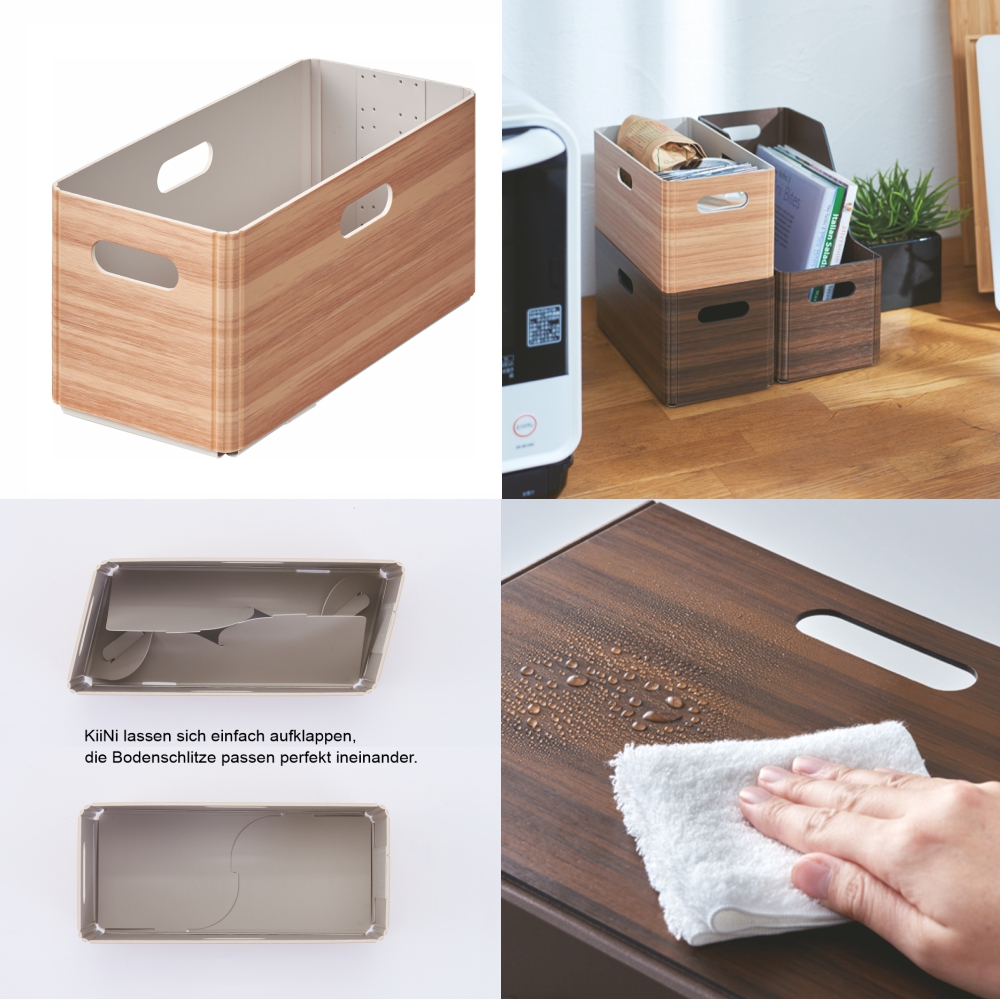 Die KiiNi Boxen aus Japan vereinen intelligentes Design mit moderner Materialtechnologie. Sie lassen sich im Handumdrehen aufbauen und bei Nichtgebrauch flach zusammenklappen – ideal für flexible Ordnungssysteme.
