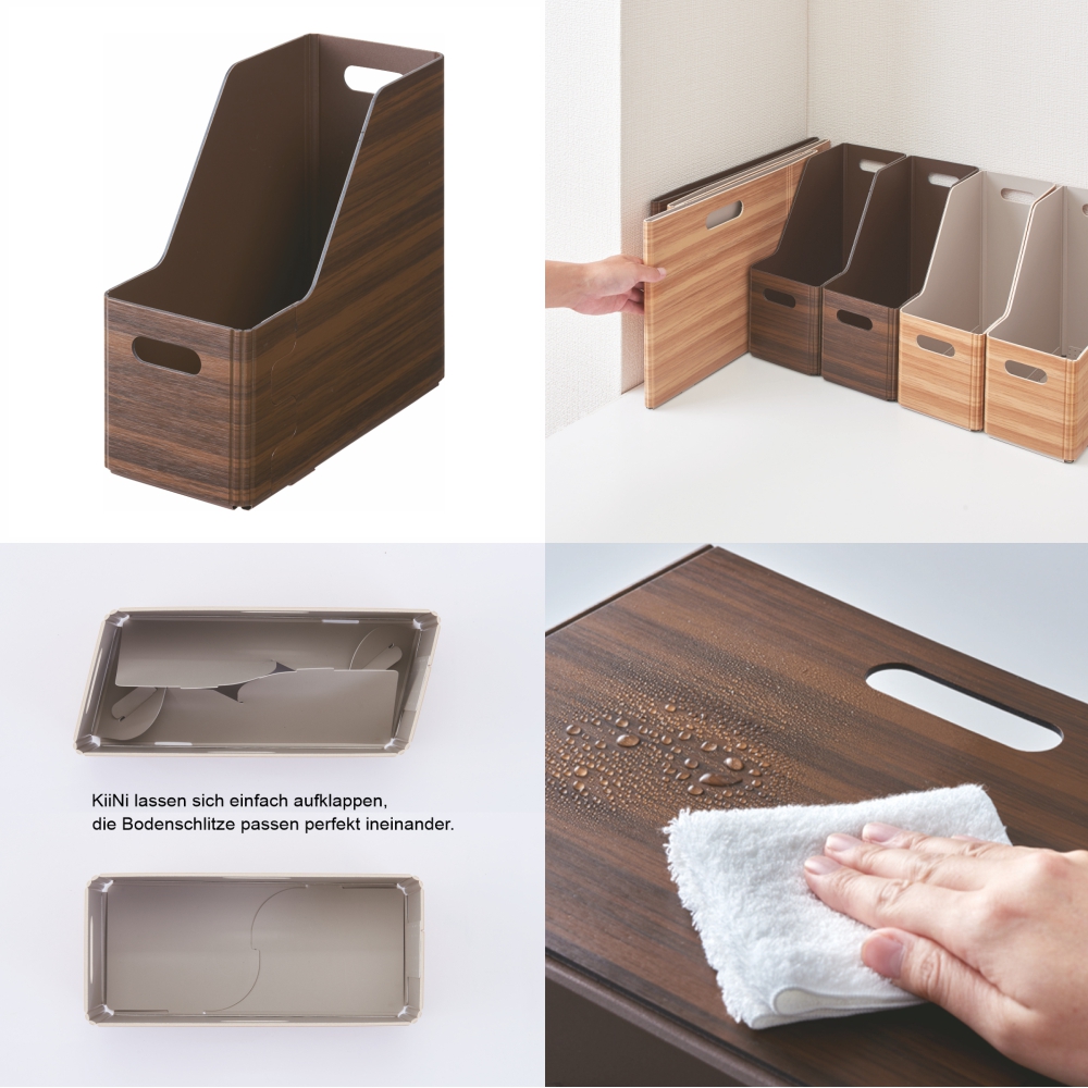 Die KiiNi Boxen aus Japan vereinen intelligentes Design mit moderner Materialtechnologie. Sie lassen sich im Handumdrehen aufbauen und bei Nichtgebrauch flach zusammenklappen – ideal für flexible Ordnungssysteme.