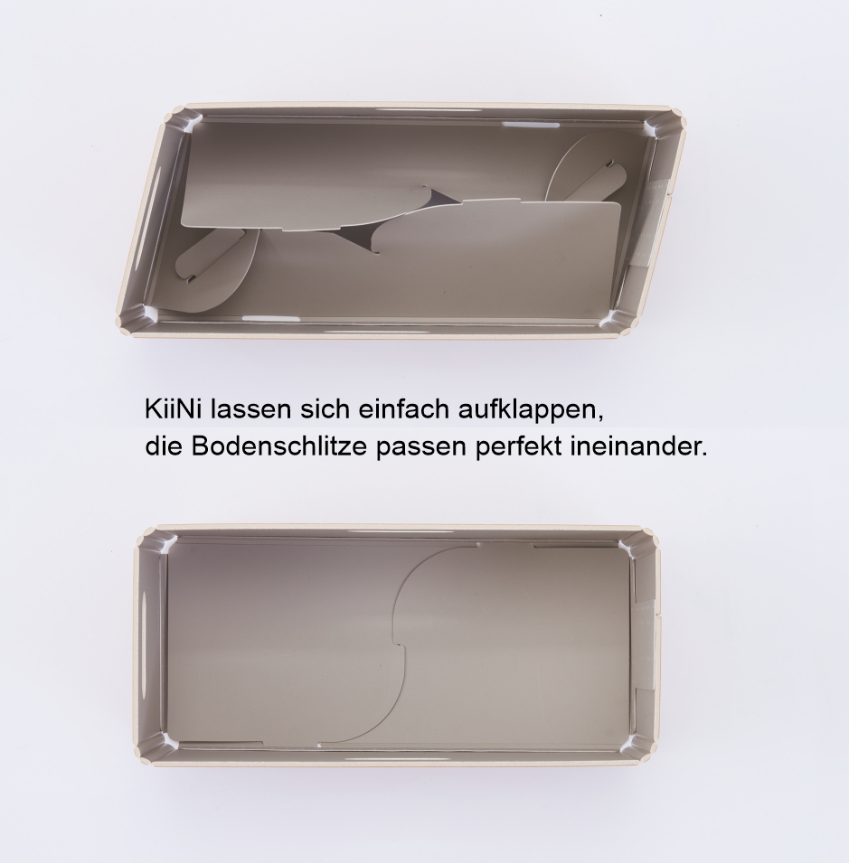 Die KiiNi Boxen aus Japan vereinen intelligentes Design mit moderner Materialtechnologie. Sie lassen sich im Handumdrehen aufbauen und bei Nichtgebrauch flach zusammenklappen – ideal für flexible Ordnungssysteme.