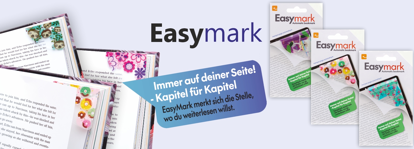 Easymark ist immer auf deiner Seite – von Kapitel zu Kapitel. Denn Easymark ein smartes Lesezeichen, dass sich von selbst die Stelle im Buch merkt, die du zuletzt aufgeschlagen hast. Du steckst es einfach ins Buch, und es bleibt beim Umblättern automatisch auf der richtigen Seite. Perfekt für Lesepausen zwischen U-Bahn, Kaffee oder Sofa-Sessions!