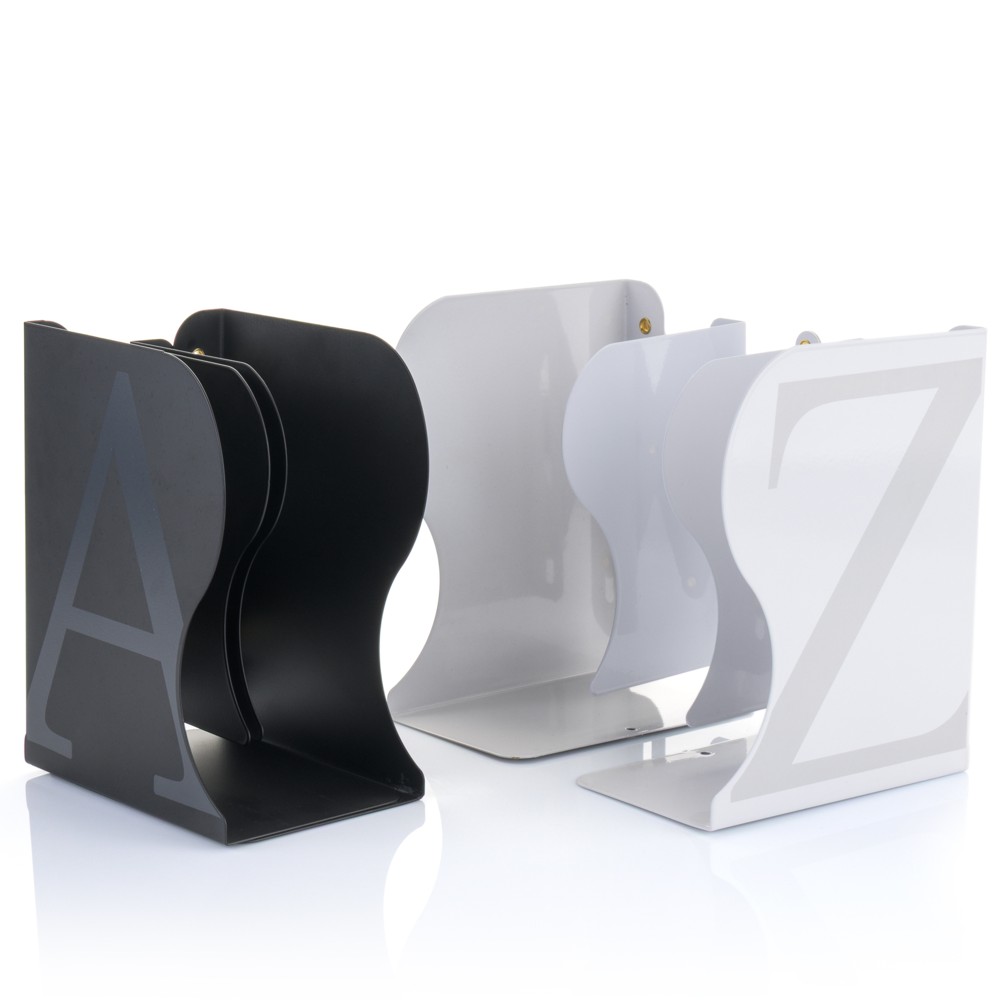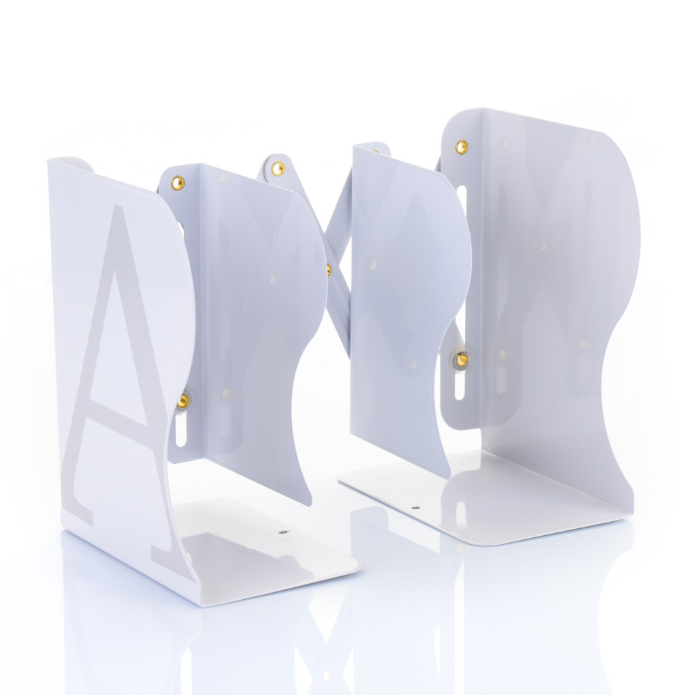 MyLibrary | A-Z Metall-Buchregal (weiß) verstellbare Buchstütze