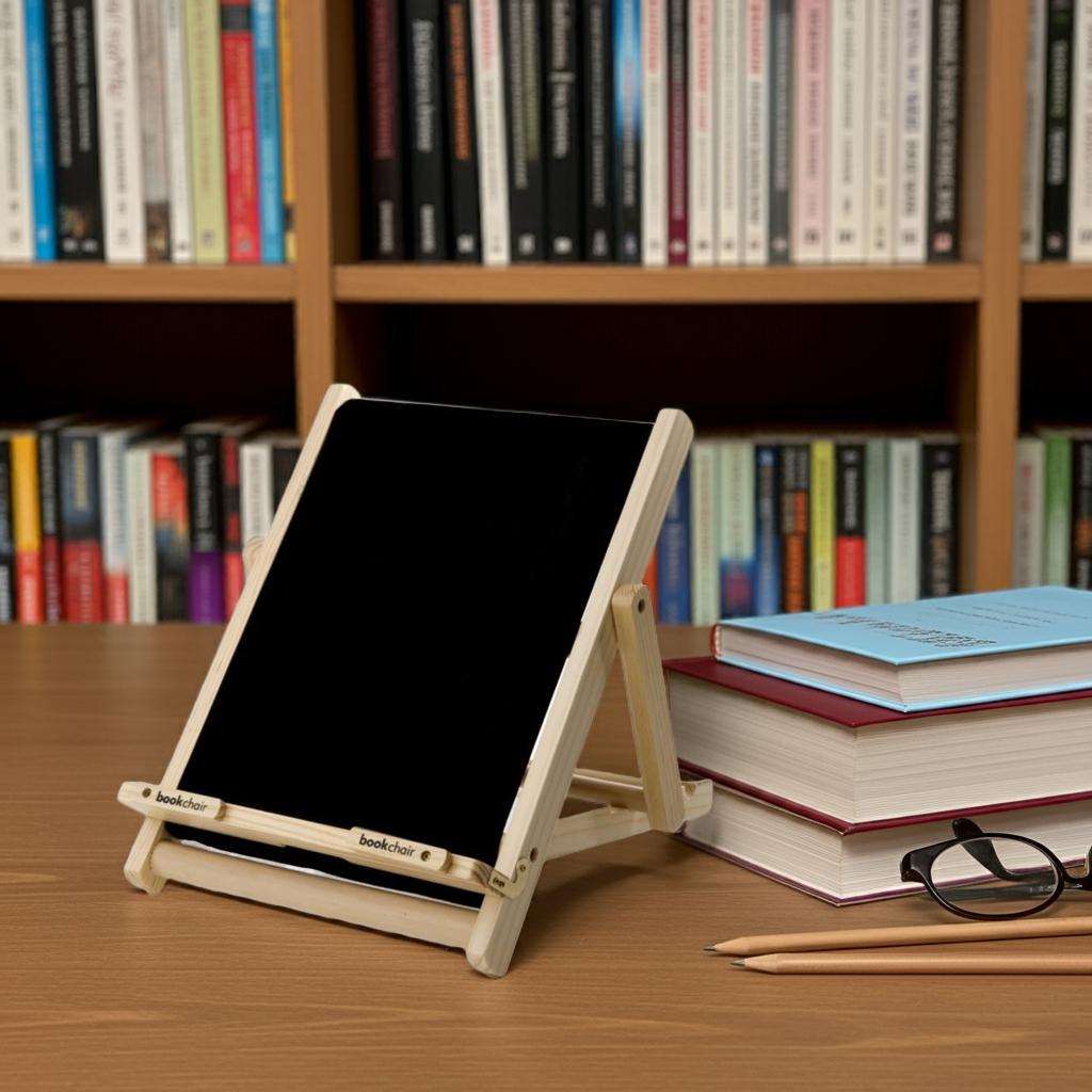 Neben seiner Funktion als Leseständer eignet sich der Standard Bookchair auch als Notebookhalter oder für Tablet-PCs.