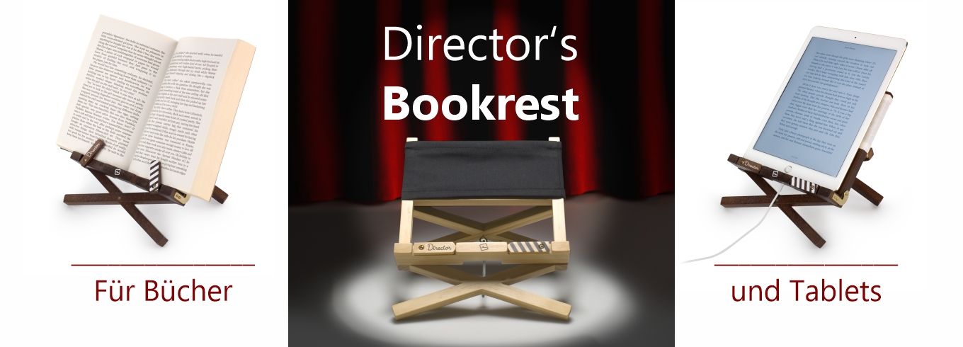 Mit diesem herrlichen Buchständer im Design eines Regiestuhls hat die Bookchair-Familie wieder Zuwachs bekommen. Geeignet für Bücher, Tablets und E-Reader. Zwei ausziehbare Seitenhalter erlauben freihändiges Lesen, bei dünnen und dicken Büchern! Achtung: Schmökerstunde - Klappe die Erste!