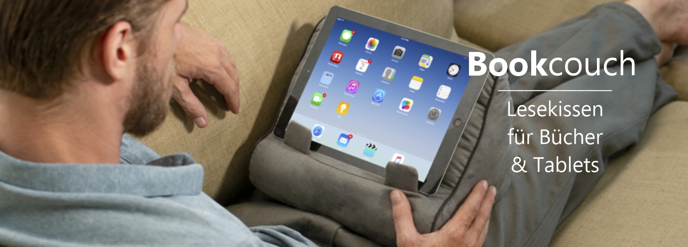 Das BookCouch Lesekissen hält Bücher in jeder Größe und auch Tablets und E-Book-Reader und kann von Jung und Alt benutzt werden.